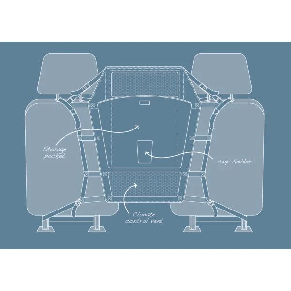 Het scherm is gemaakt van een duurzame stof met een stalen frame dat vast zit aan de achterzijde van de voorstoelen. Hierdoor ontstaat er een zachte muur tussen de bestuurder en de hond die bij een noodstop jouw hond niet naar voor katapulteert. Het gaaspaneel in het midden zorgt ervoor dat het zicht van de hond niet belemmerd wordt. En om het reizen met de wagen nog makkelijker te maken, is er een bekerhouder en opslagzakje voorzien aan de achterzijde.