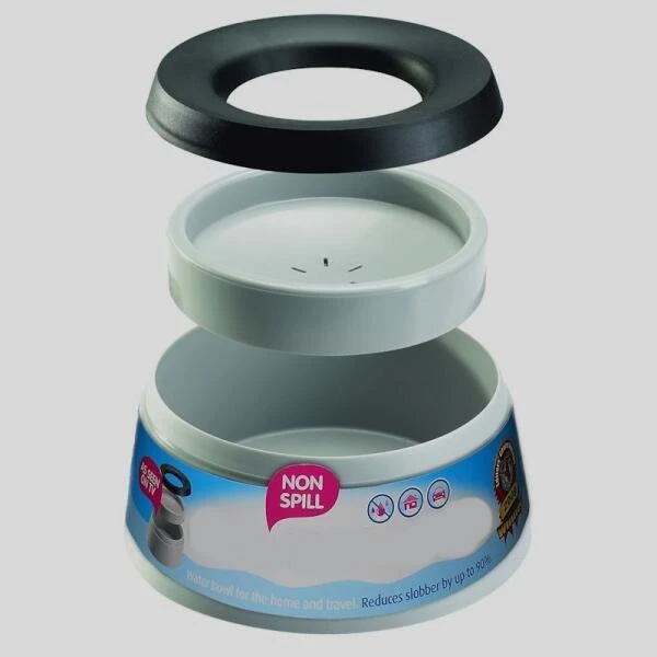 Deze waterbak heeft een dubbele bodem (vlotter) met openingen die ervoor zorgen dat er maar een klein laagje water bovenop ligt. Zodra de hond tegen de vlotter aandrukt, komt er water door de openingen naar boven. Jouw hond drinkt hierdoor veel rustiger en minder gulzig.