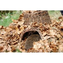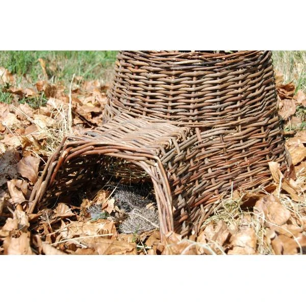Dit wilgentenen egelnest kan met bladafval of hooi worden opgevuld en afgedekt om er een gezellig en warm bedje van te maken. Plaats het op een rustige en beschutte plek in de tuin en hou de ingang ten allen tijde vrij.