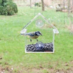Kleine tuinvogels komen in de koude wintermaanden makkelijk tot bij het raam en met dit raamvoederhuis kan je ze uitstekend van binnenshuis observeren.