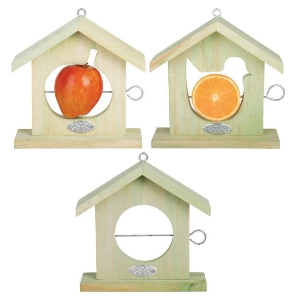 Het voederhuisje is er met drie verschillende vormen: appel, cirkel en vogeltje en worden willekeurig aangeboden.
