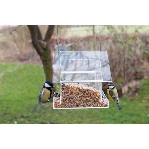 Leuke transparante voedersilo waarin je twee soorten voeding kan aanbieden. Het dak is afneembaar waardoor je de silo gemakkelijk op kan vullen.