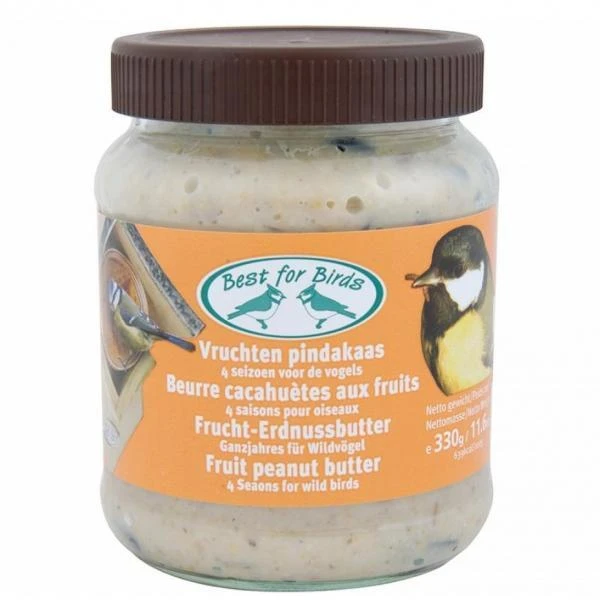 Deze 4-seizoenen zoutloze vruchtenpindakaas is speciaal ontwikkeld voor vogels en bevat de essentiële ingrediënten en eiwitten welke uw tuinvogels nodig hebben. Pindakaas voor menselijke consumptie is minder geschikt voor tuinvogels omdat hier hoge gehaltes aan zout in kunnen zitten.