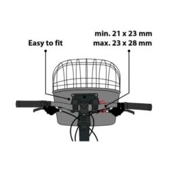 Met deze kwalitatieve fietsmand kan jouw trouwe viervoeter voortaan overal mee op pad. De fietsmand kan aan het stuur van jouw fiets worden gemonteerd en is voorzien van een draadkap. Door de kap kan je de hond veilig vervoeren terwijl hij toch om zich heen kan kijken.