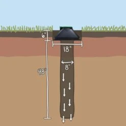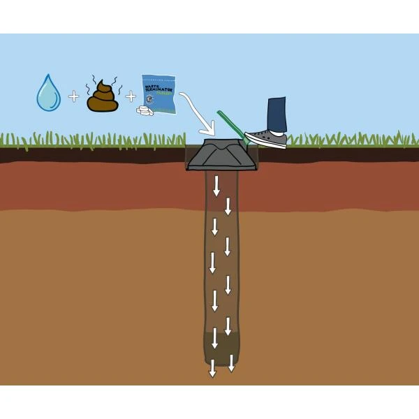 Deze verteerput werkt enkel goed in een zware bodem. Bij zware kleigrond echter moet er drainage worden voorzien. De hondenmestverwerker werkt als een septische put. Schep de drollen er in en doe er water met verteertabletten bij en de uitwerpselen worden biologisch afgebroken. De verteertabletten met enzymenwerking zijn onschadelijk voor huisdieren, het gazon of de beplanting.