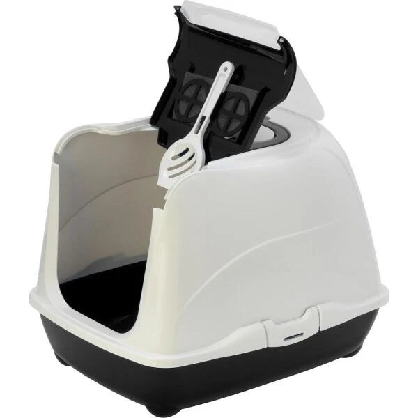 Het Loki kattentoilet is heel handig in gebruik. Het semi -transparante klapdeurtje aan de voorzijde kan je helemaal tot halverwege het deksel openklappen zodat je makkelijk toegang hebt tot de kattenbak maar ook de bovenkant kan er helemaal af dankzij 2 klemmen die vasthangen aan de bodem.