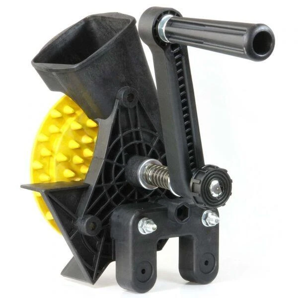 Handig toestel om maïskorrels van de kolven te halen met de mogelijkheid tot het monteren op een houten kist of een andere stevige basis via een stevig schroefsysteem.