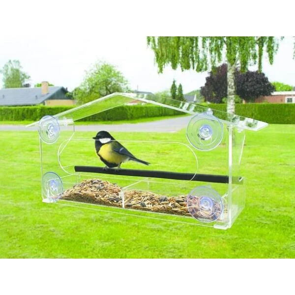 Hang dit voederhuis op een leuke plaats aan het raam van jouw keuken of woonkamer en geniet van de aanvliegende vogels.