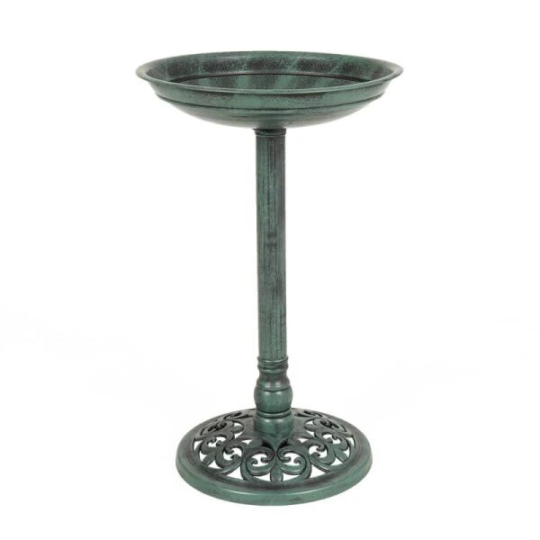 Mooi traditioneel vogelbad in duurzaam kunststof met een groene antiek ogende patine.