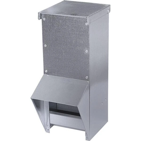 Met deze gegalvaniseerde voederbak voor kippen, fazanten, eenden en ander pluimvee hoef je niet elke dag te gaan voederen. Bovendien blijft het voeder mooi droog en wordt morsen tot een minimum beperkt zodat ook de overlast van vervelende knaagdieren achterwege blijft.