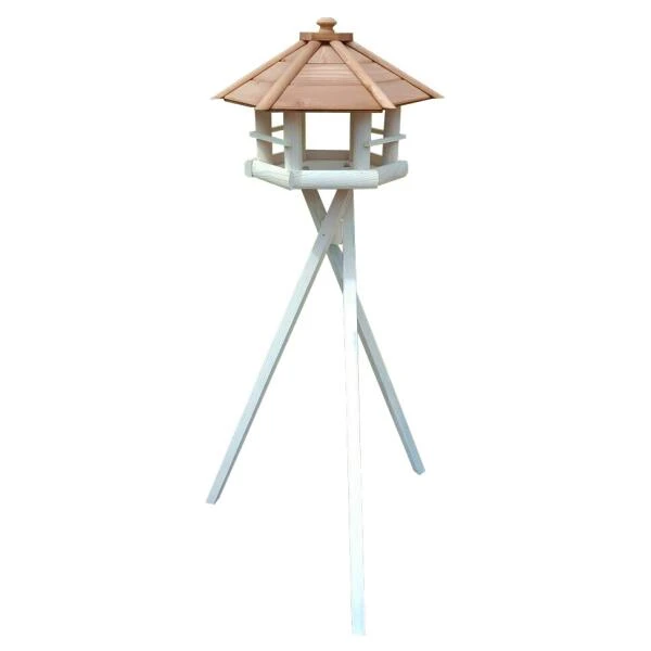 Voederhuis Tampere is een grote voedertafel met een uniek design. De zeshoekige voedertafel is ruim genoeg zodat heel wat vogels terzelfdertijd van het voeder kunnen eten. Op de tafel kan je een volledig assortiment aanbieden: van zaden, tot zonnebloempitten, pindanoten en vetversnaperingen, voor elke vogel wat wils. Het dak zorgt ervoor dat het voeder beschermd is tegen de regen en het langer vers blijft.