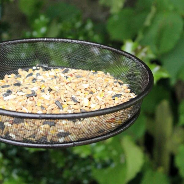 Het schaaltje is voorzien van een gaas waardoor het water makkelijk wordt afgevloeid en het voeder droog blijft.