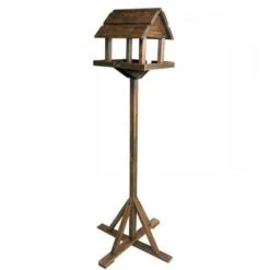 Dit prachtige voederhuis op statief heeft een voederplank en een dak dat zorgt voor beschutting tegen regen, sneeuw en eventuele roofvogels. Omdat het op een hoog stevig statief staat is het tevens de ideale uitkijkpost in jouw tuin.
