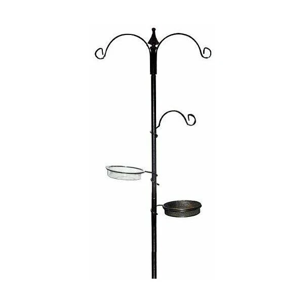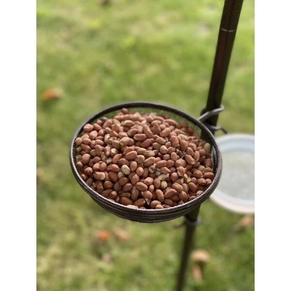 Het voederstation is voorzien van twee haken aan de bovenzijde en een derde haak die je zelf op de gewenste hoogte kan hangen. Er is ook een drinkbakje en een voederschaaltje voorzien. Aan de haken kan je naar eigen keuze gevulde voedersilo’s, vetbollen of netjes met pindanoten ophangen. Zorg voor variatie om verschillende soorten vogels aan te trekken.